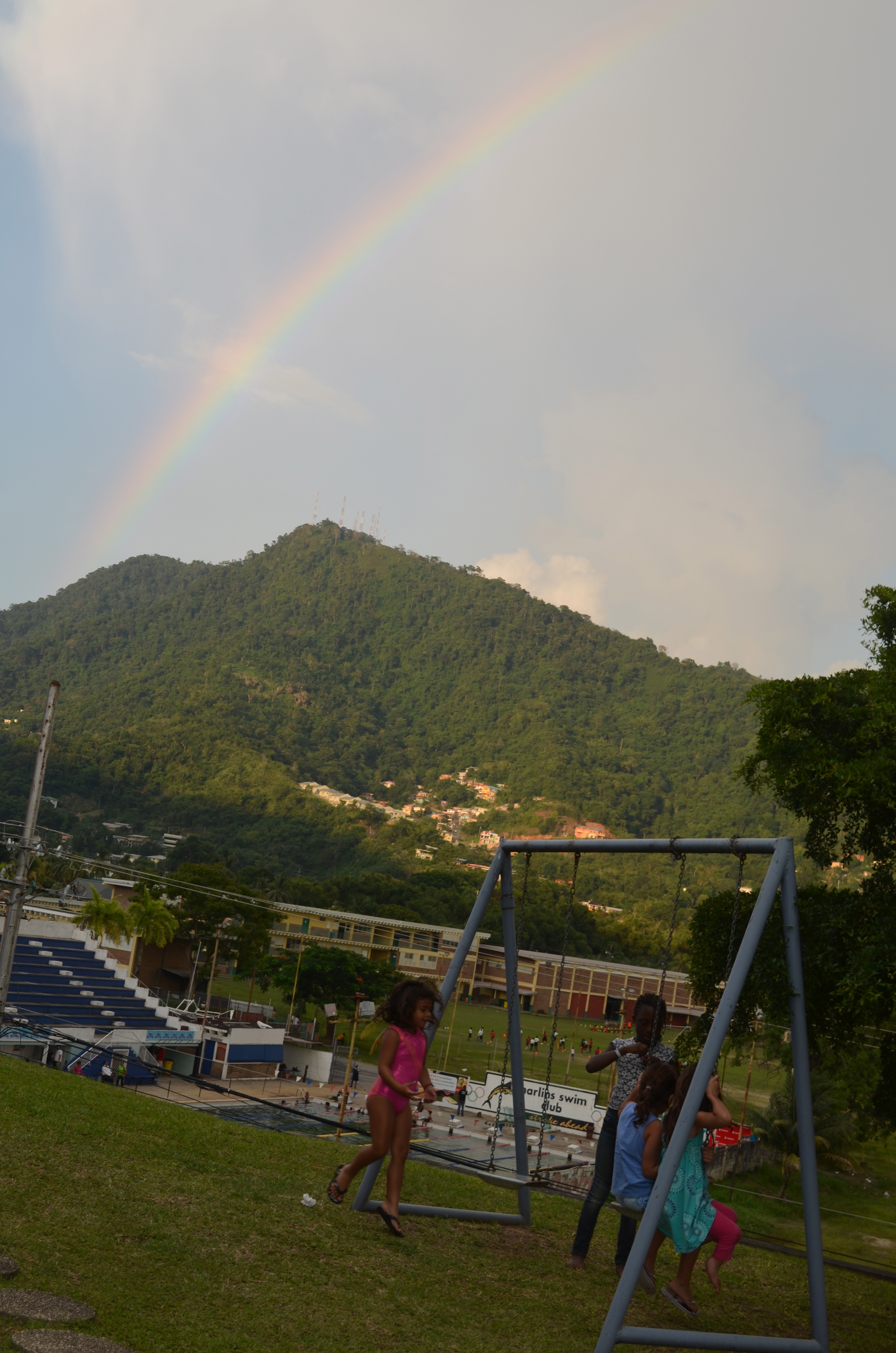 Here is the view beneath the rainbow when the neighborhood kids are out to play. Thank goodness for neighborhood kids!
