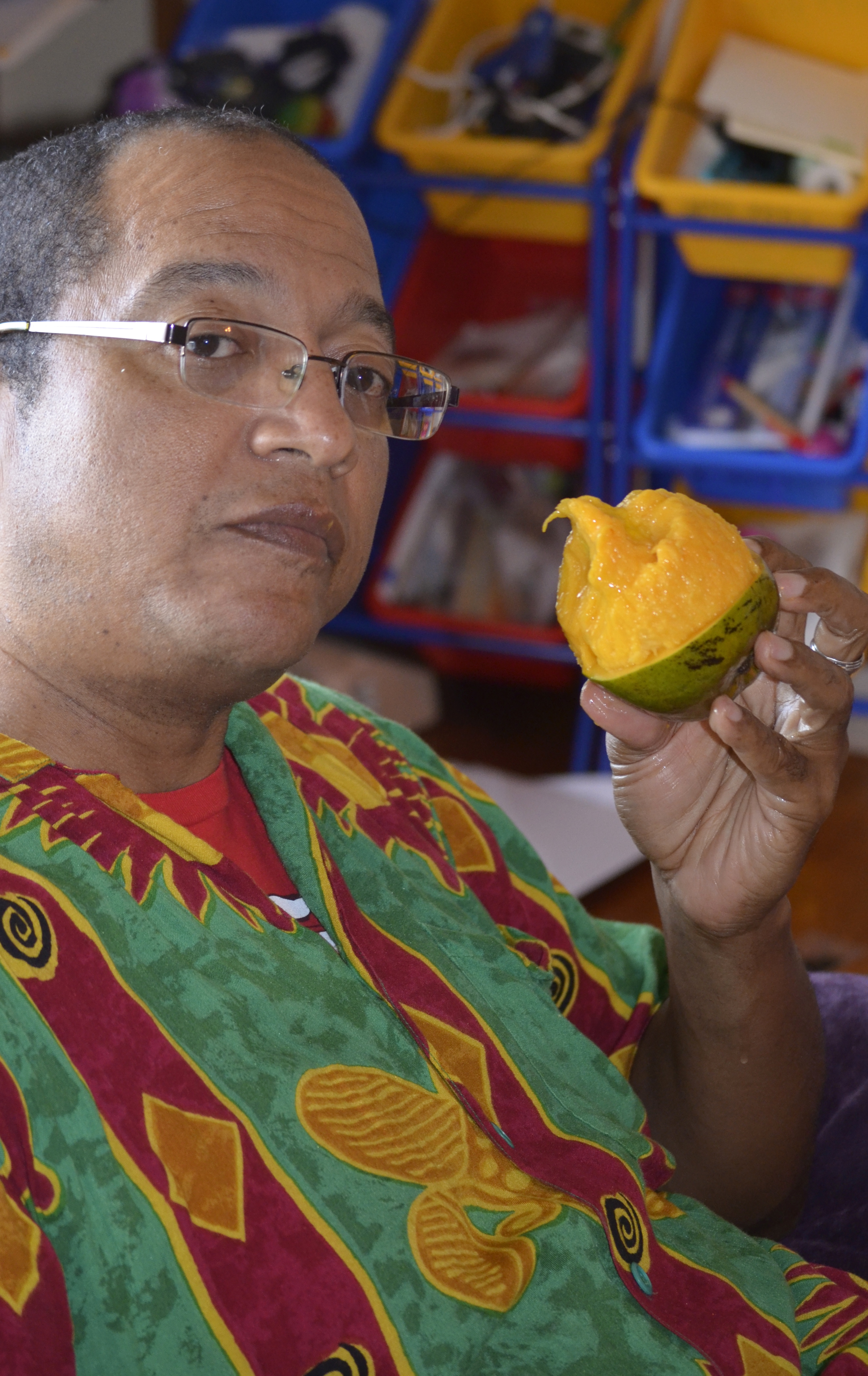 In addition to rapture, the eating of a Trinidadian mango can also evoke laughter and copious amounts of joy.